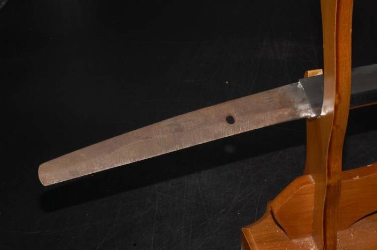 La lama ha un vivido Hamon in stile Gunome (ondulato regolare) e un grande Horimono che attraversa quasi tutta la spada. Raffigura un albero di pompelmo, che simboleggia la bellezza e l´effimero della vita, concetti molto apprezzati dai samurai. Lo Shirasaya protegge la lama meglio del Koshirae dall´umidità e dai danni grazie al suo legno speciale. Era usato dai samurai mentre non erano in combattimento. La lama, polita professionalmente, è in buonissime condizioni, senza scalfitture e Hagire.