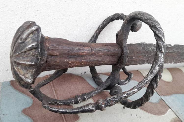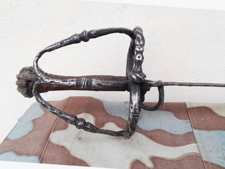 BELLISSIMA SPADA LUNGA DA CAVALLO PER UFFICIALE LANZICHENECCO. CONDIZIONI MODESTE DI CONSERVAZIONE MA ANCORA SOLIDA, ANCHE NELLA LAMA.