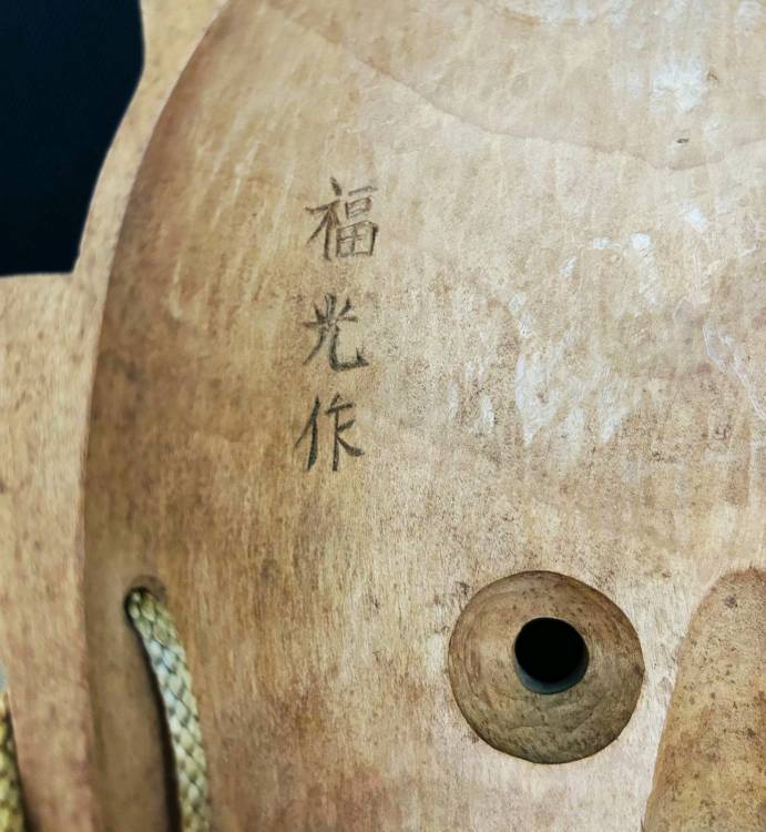Maschera Noh scolpita in legno di alta qualità. Autore 福光, firmata nel retro.