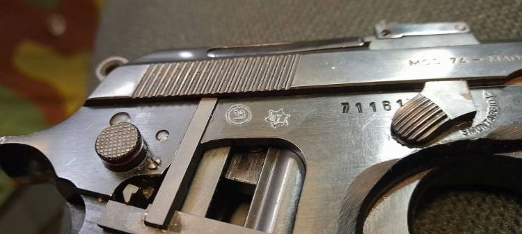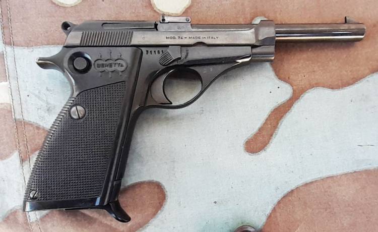 RARA PISTOLA BERETTA MOD.74 PRODOTTA DALLA BERETTA PER I REPARTI SPECIALI ISRAELIANI. CONSERVA ANCORA LO SCARRELLAMENTO E LO SCATTO. SERBATOIO AMPVIBILE.