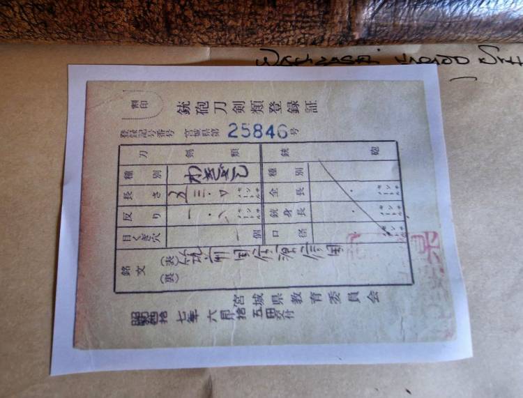 Lunghezza totale 77 cm. Nagasa 53,0 cm. Habaki laminato in bronzo. Sori 1,8 cm. Mekugi 1 Larghezza all´hamachi 2,55 cm. Kasane 0,58 cm.