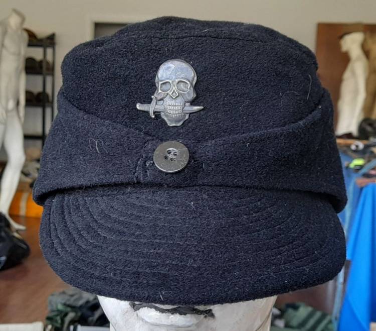 BERRETTO DELLA GUARDIA NAZIONALE REPUBBLICANA IN LANA NERA. TESCHIO MOD. PICCOLO IN METALLO.