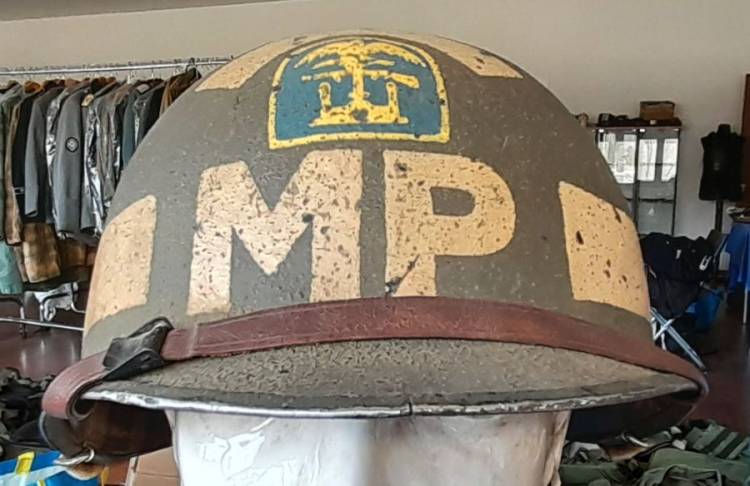 RARISSIMO ELMETTO DELLA MILITAR POLICE AMERICANA DELLA II GM. COMPLETO DI LINER (CAPAC) E SOGGOLO.