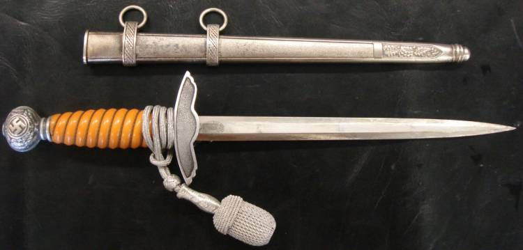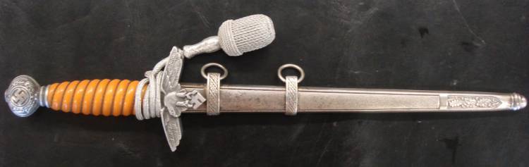 DAGA DA UFFICIALE DELLA LUFTWAFFE, 2° TIPO. LAMA MARCATA "*F.W.HOLLER*SOLINGEN*". COMPLETA DI FODERO. CONDIZIONI SPLENDIDE.