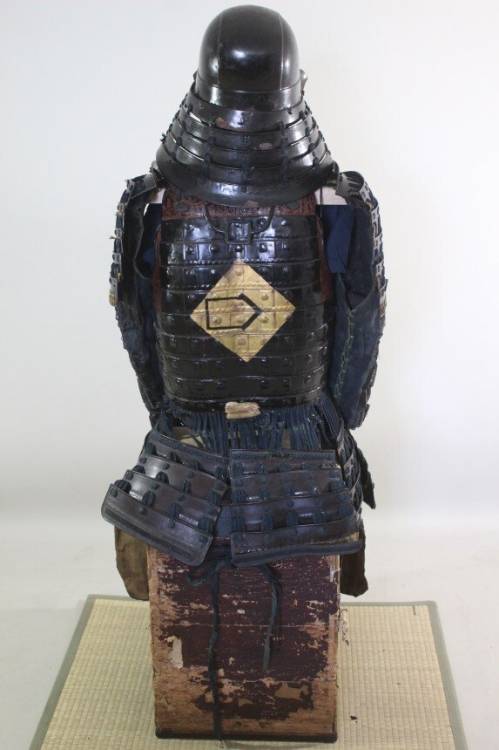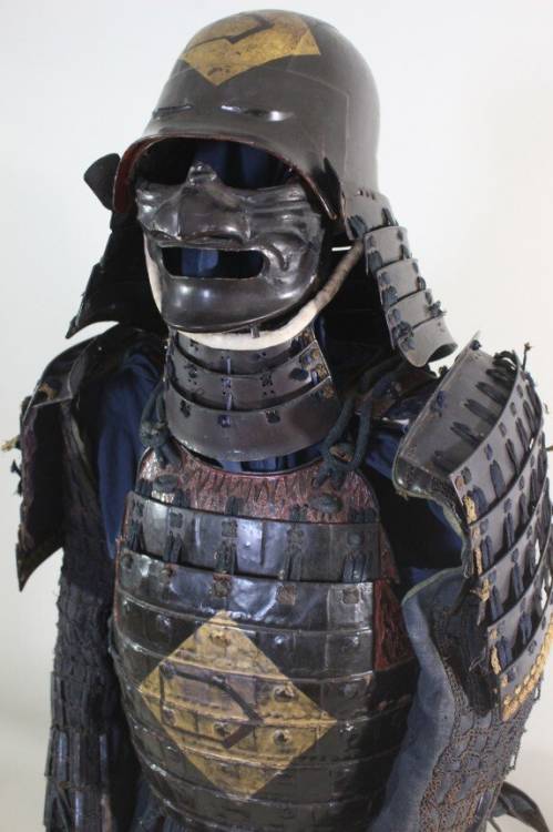 Mendare: laccato nero rivestito in ferro. Yokohagi Dou Gusoku: 2 piastre in ferro laccato nero con Mon di famiglia Oro.