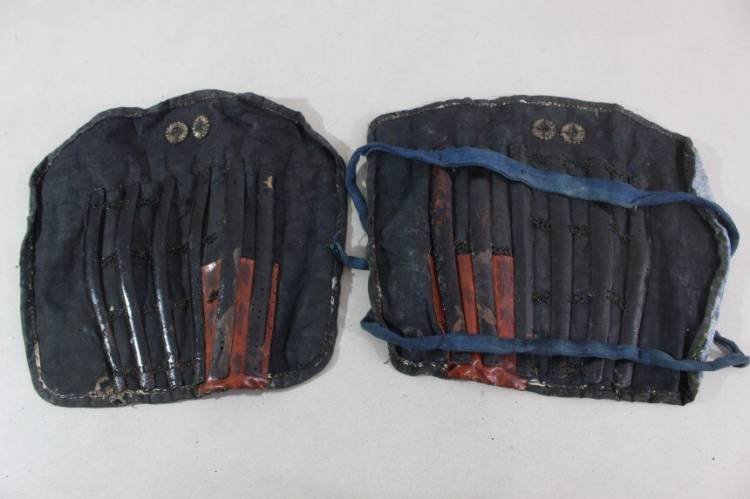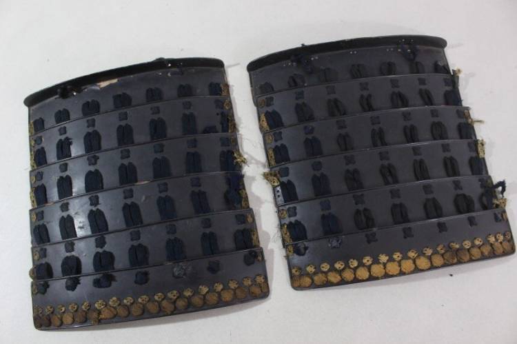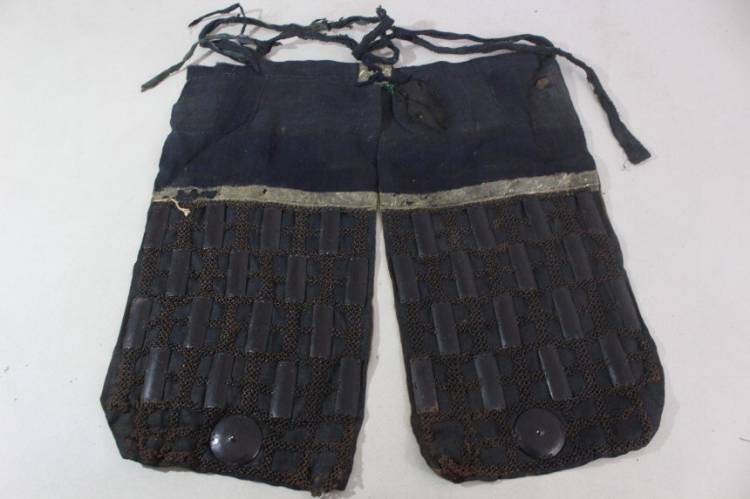 Kusazuri: rivestito in pelle laccato nero.