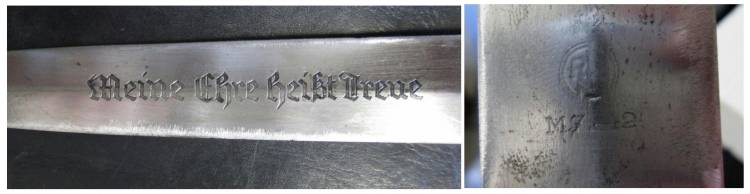 DAGA SS(Schutzstaffeln)mod.33. COMPLETA DI FODERO. LAMA INCISA AD ACQUAFORTE CON MOTTO "Meine Ehre heißt Treue"(IL MIO ONORE SI CHIAMA FEDELTA´) DA UN LATO E MARCHIO RZM M7/42 DALL´ALTRO. CONDIZIONI DISCRETE.