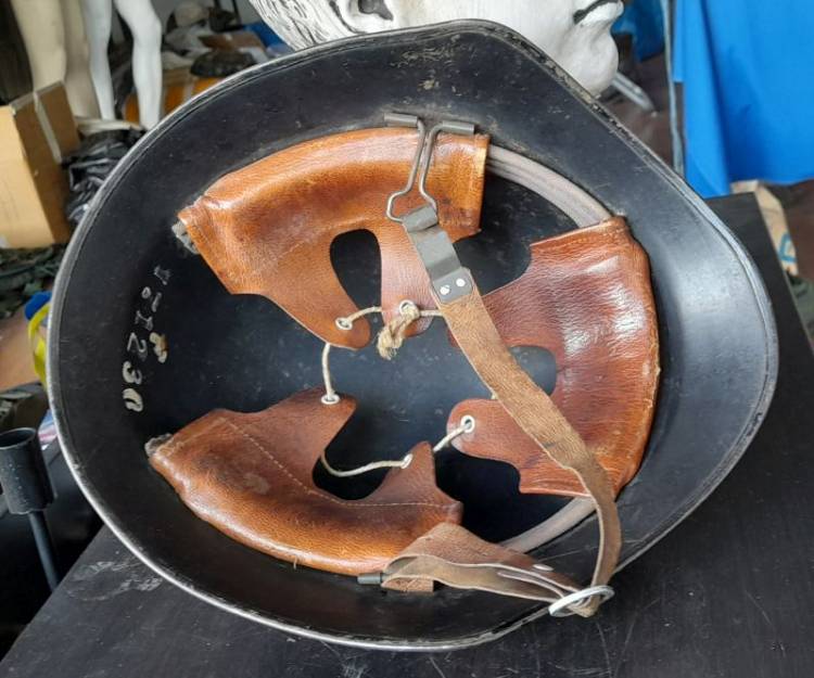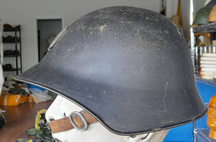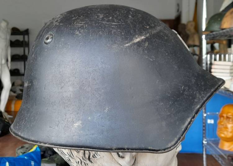 ELMETTO MOD. 18 DELL´ESERCITO SVIZZERO USATO ANCHE DAI POMPIERI, IN QUESTO CASO DI GINEVRA, COME DA STEMMA AMOVIBILE APPOSTO SUL FRONTALE DELLL´ELMO.