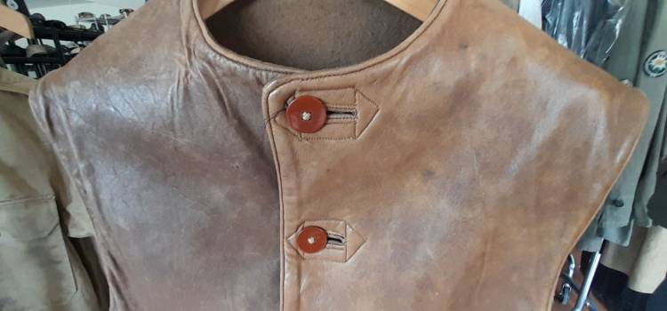 GILE´ IN MORBIDA PELLE MARRONE FODERATO IN LANA DA INDOSSARE SOPRA IL BATTLE-DRESS. IDEATO PER CARRISTI, MECCANICI E AUTIERI.