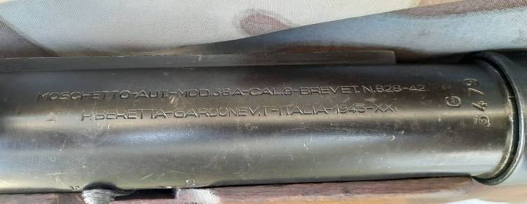 BELLISSIMO MOSCHETTO AUTOMATICO BERETTA PRODOTTO NEL 1943 PER LA REPUBBLICA SOCIALE. ARMA ANCORA SCARRELLANTE, CON SCATTO, SERBATOIO AMOVIBILE.