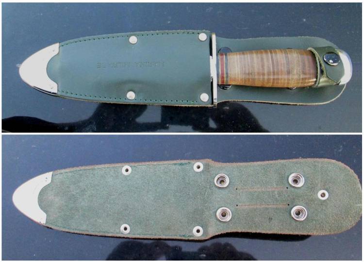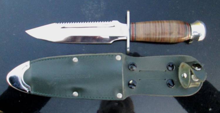 PUGNALE INDIVIDUALE, D´ORDINANZA, DA SOPRAVVIVENZA PER PILOTI DELL´AERONAUTICA ITALIANA. LAMA IN ACCIAIO INOX 440C DUREZZA HRC 56/58. COMPLETO DI FODERO IN PELLE VERDE CON RINFORZI IN METALLO. MARCATO ´AERONAUTICA MILITARE´. PERIODO ANNI 1970-90. PARI AL NUOVO.