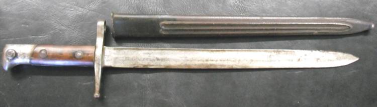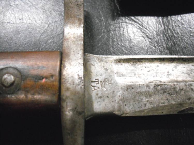 BAIONETTA PER FUCILE CARCANO mod.1891 (LUNGO) I GUERRA MONDIALE. LAMA MARCATA "TA" CON CORONA. COMPLETA DI FODERO ORIGINALE IN METALLO. BUONE CONDIZIONI.