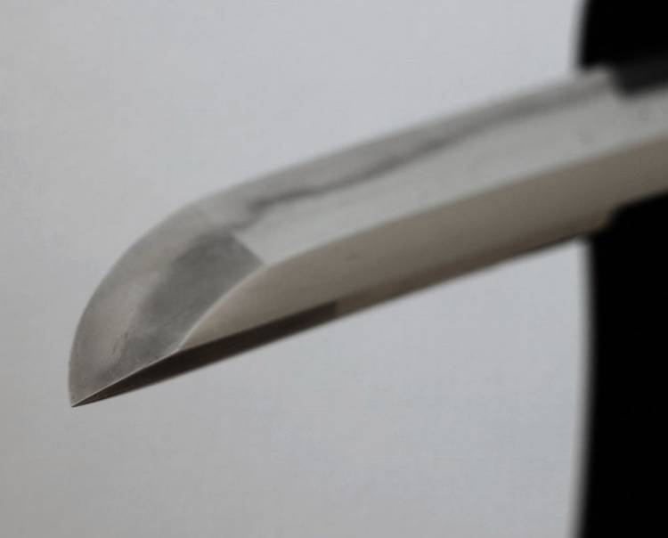 1 mekugi-ana. Splendido Hamon del tipo ´ko notare misto a suguha´.