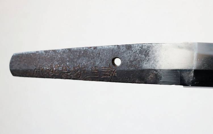 La spada, forgiata intorno al 155o, reca la firma (alla sinistra del nakago, lato omote) 備州 長舩 祐定 (Bishu Osafune Sukesada), un membro della famosa stirpe dei maestri spadai Sukesada 祐定 della provincia di Bizen attivi tra il periodo Kamakura e il perodo Muromachi.