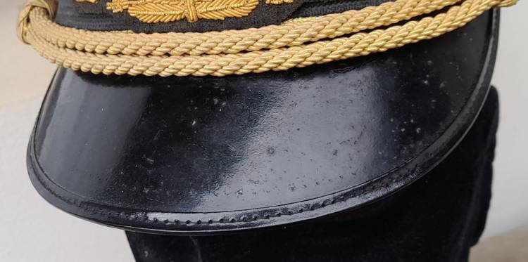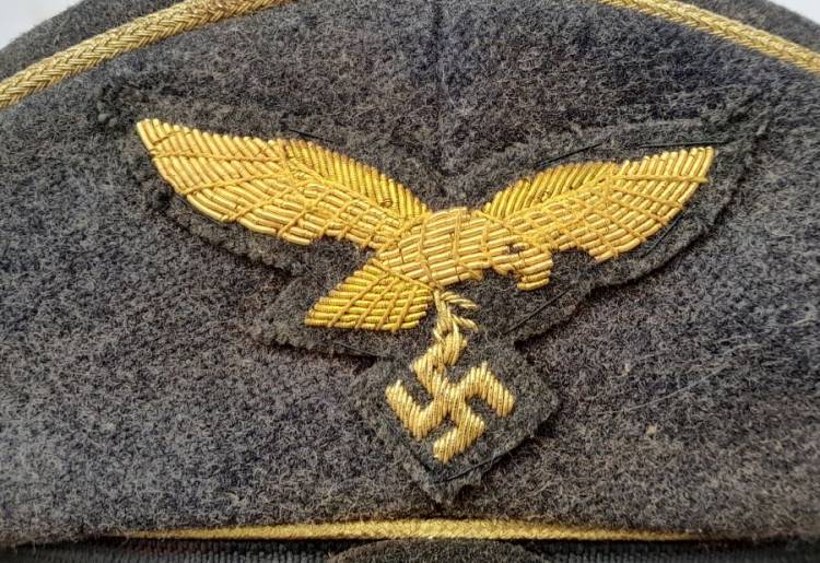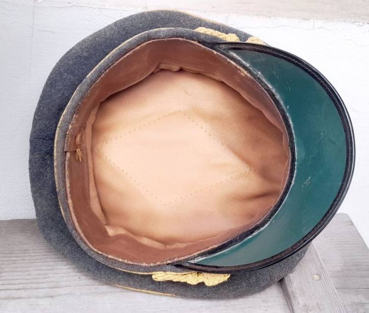 REALIZZATO IN PANNO BLU AVIAZIONE. FREGI SPLENDIDI. ALLUDA IN CUOIO. CONDIZIONI ECCELLENTI.