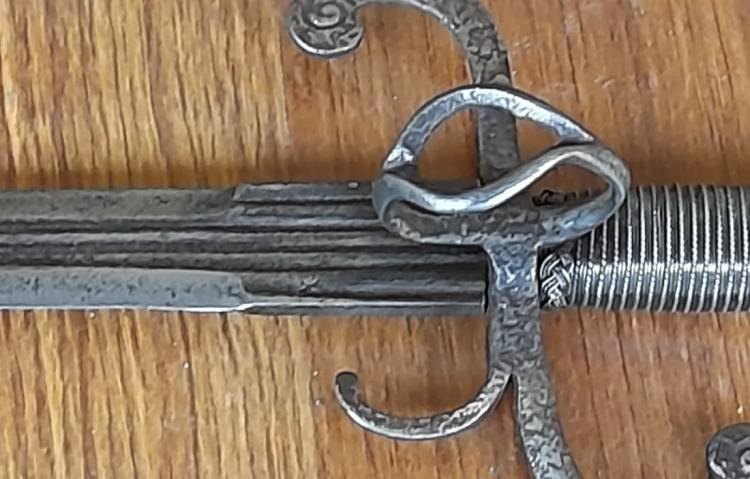 BELLA SPADA VENETA DA FANTE DI OTTIMA QUALITA´. ELSA A ´S´ E ANELLO. LAMA CON PUNZONE SUI DUE LATI.