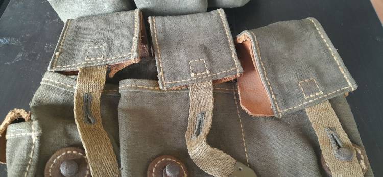 WH-SS PORTACARICATORI StG.44 IN TELA E CUOIO.