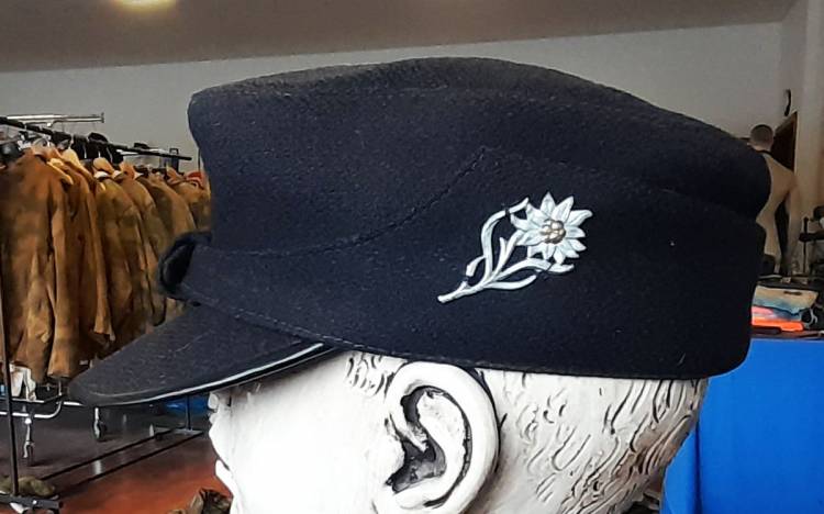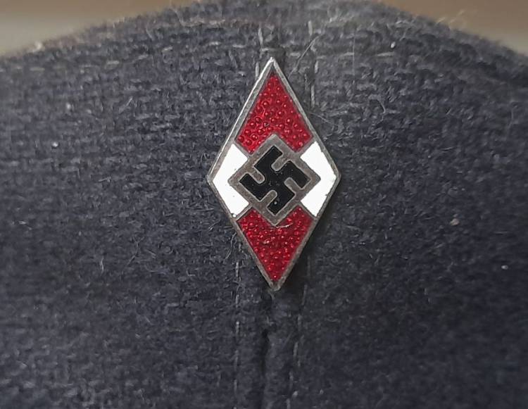 BERRETTO A VISIERA DELLA HITLER JUGEND AGGREGATI ALLE TRUPPE DA MONTAGNA. TROVATO INSIEME AI SUOI PANTALONI E GIACCHINO. CONDIZIONI ECCELLNETI. 580,00