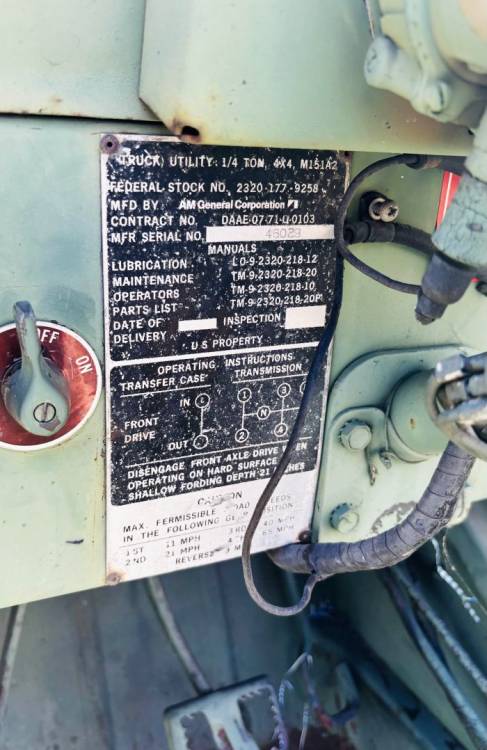 Parte del Contratto DAAE-07-71-C-0103 – Primo lotto di produzione AM General.