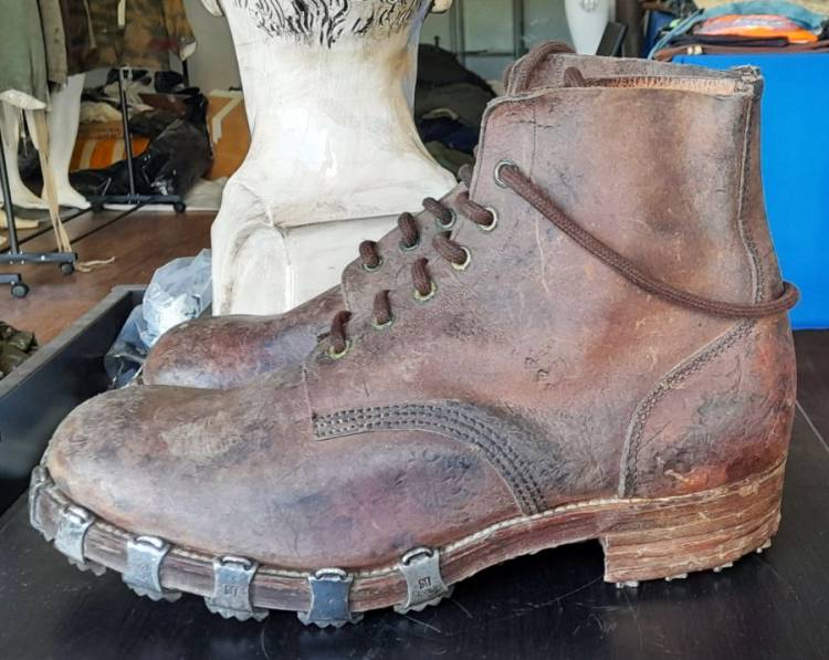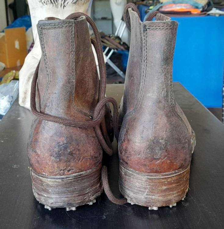 SPLENDIDI SCARPONI DA MONTAGNA DELLA II GM DI PRIMO TIPO (´FINNISH PATTERN´) CON RAMPONI ´US´.