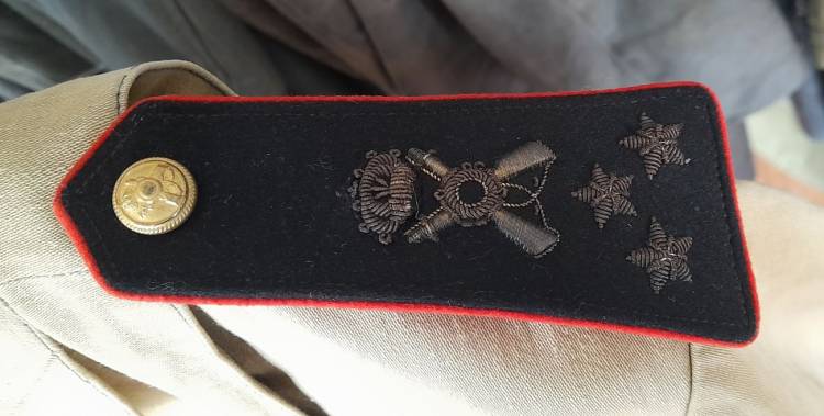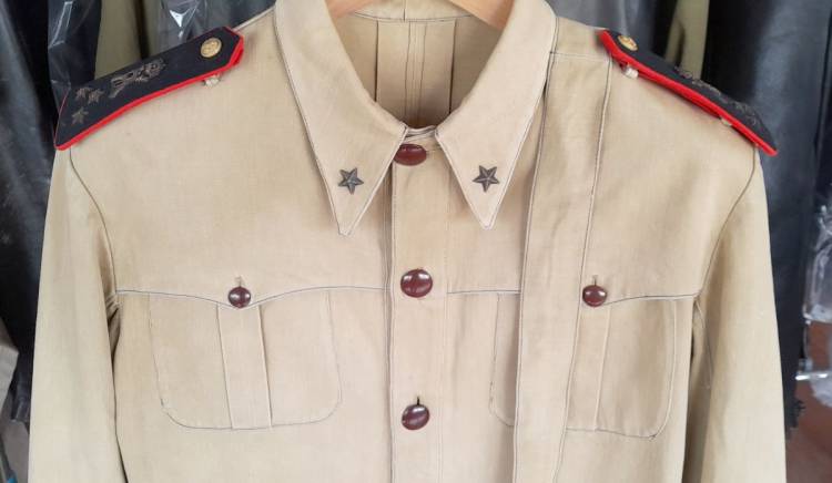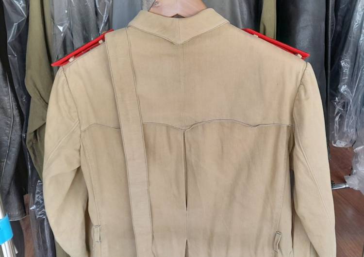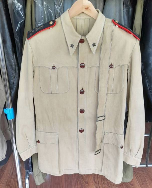 COMPLETO TROPICALE DI CAPITANO DEL 31° REGGIMENTO CHE HA OPERATO NEL FRONTE LIBICO-TUNISINO NEL 1942/43. E´ COMPOSTO DA SAHARIANA, PANTALONI, CASCO, OCCHIALI DA SABBIA, CINTURONE CON FONDINA, BORRACCIA.