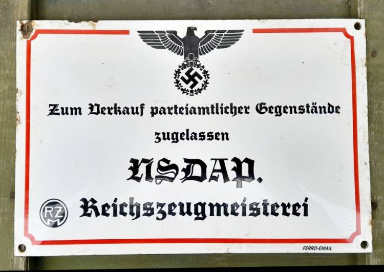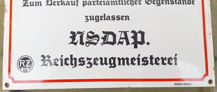 NSDAP TARGA in Ferro Smaltato ´Zum Werkaus parteiamtlicher Gegenstände zugenlassen NSDAP RZM Reichszeugmasterei’. cm. 30x20