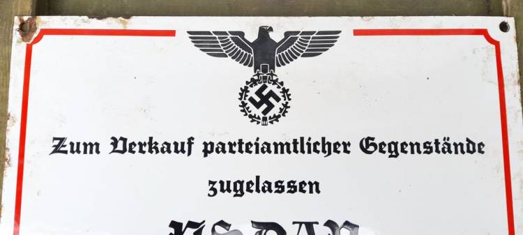RARA TARGA DELLA NSDAP IN SMALTO BIANCO CON SCRITE NERE. SOTTO L´AQUILA DEL REICH, RIPORTA LA SCRITTA