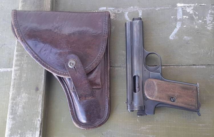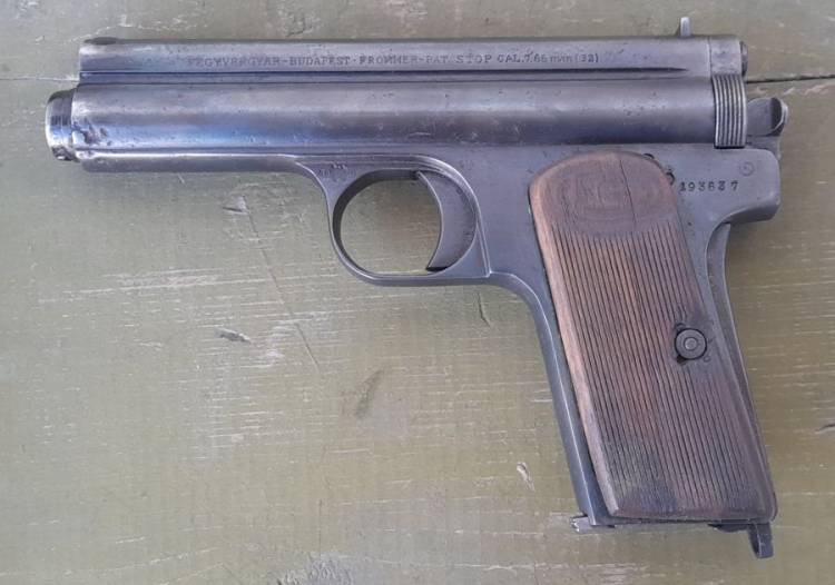 PISTOLA FROMMER STOP M.1912 PRODOTTA DALLA UNGHERESE FEG. SCARRELLANTE E CON SERBATOIO AMOVIBILE, E´ PROVVISTA DELLA SUA RARA FONDINA IN CUOIO MARCATA 1917.