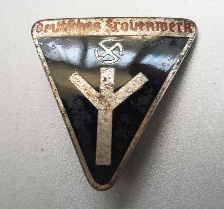 Spilla dell´Associazione Femminile del Lavoro (DFW). Prodotta dalla ditta ´Wilhelm Deumer, Lüdenscheid, Nordrhein-Westphalen´ (RZM M1/120).
