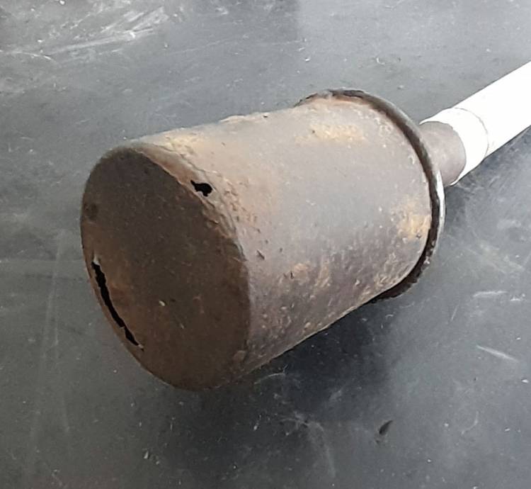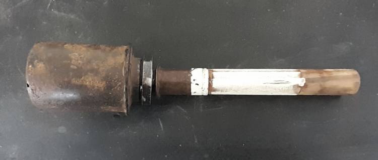 RARISSIMA GRANATA PER PISTOLA LANCIAGRANATE ´KAMPFPISTOLE Z´. LA TESTATA ESPLOSIVA ERA UNA NORMALISSIMA M.24 A CUI VENIVA AGGIUNTO UN CILINDRO DI LEGNO DA INSERIRSI NELLA CANNA DELLA PISTOLA.