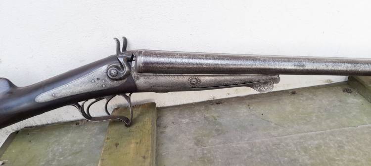 ARMA DI FINISSIMA FATTURA DELLA SECONDA META´ DELL´800. HA UN PARTICOLARE SISTEMA DI APERTURA A LEVA. CANNE A TORCIGLIONE.