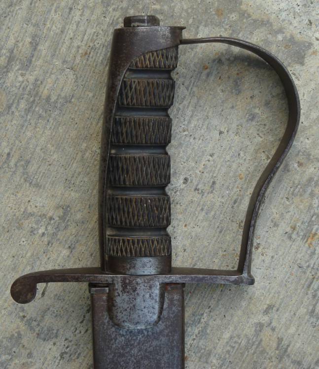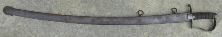 Possente Spada da Ufficiale di Cavalleria Mod. 1855 con lama "alla Ussara" molto larga, più antica, gravata da florami e motivi "alla turca". Impugnatura in ebano.