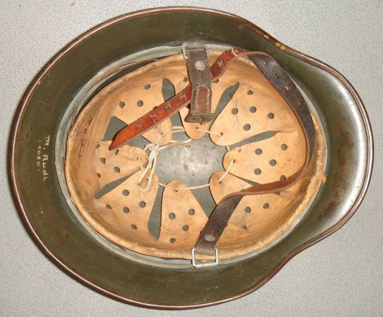 MODELLO 40 HEER MONOFREGIO. FABBRICANTE SE. TG. 64. DECALCOMANIA AL 90%. NOME E MATRICOLA DEL POSSESSORE DIPINTI ALL´INTERNO. LINER INTERNO TG. 56 COMPLETO DI SOGGOLO MARCATO. TUTTO ORIGINALE D´EPOCA.