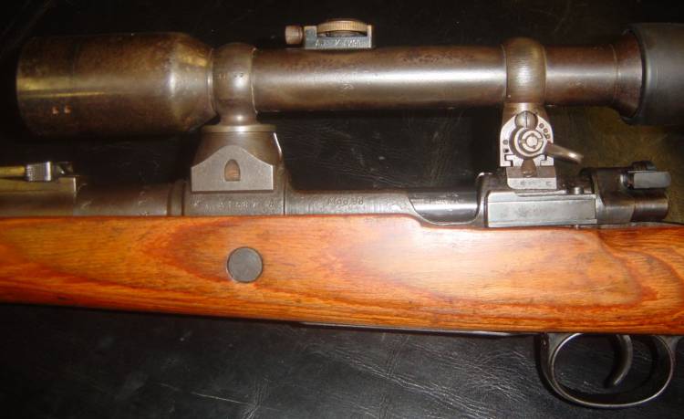 Splendido K98k Sniper MONOMATRICOLA compresa l´ottica (Ajack 4x90). Brunitura 85%. Lenti chiarissime.