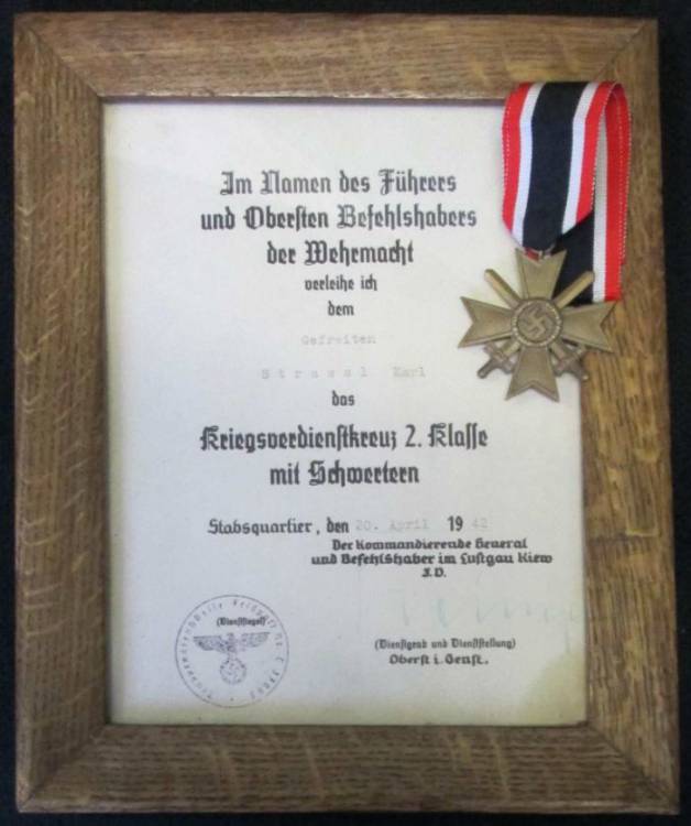 PERFETTA Kriegs Verndienst Kreuz II Cl. mit Schwertern. ATTESTATO DI CONFERIMENTO DEL 1942.
