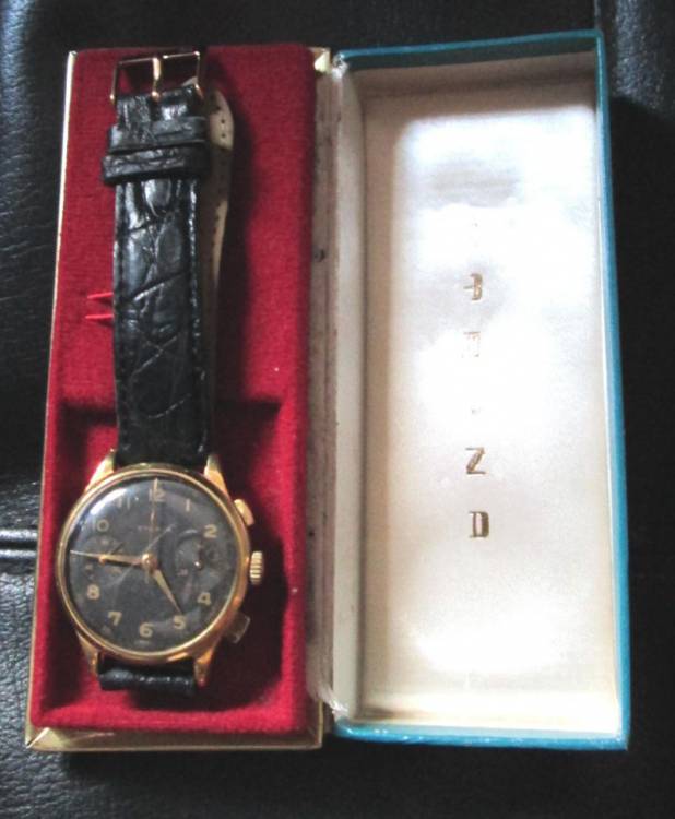 Due contatori. Quadrante nero. Condizioni molto buone. Con scatola.