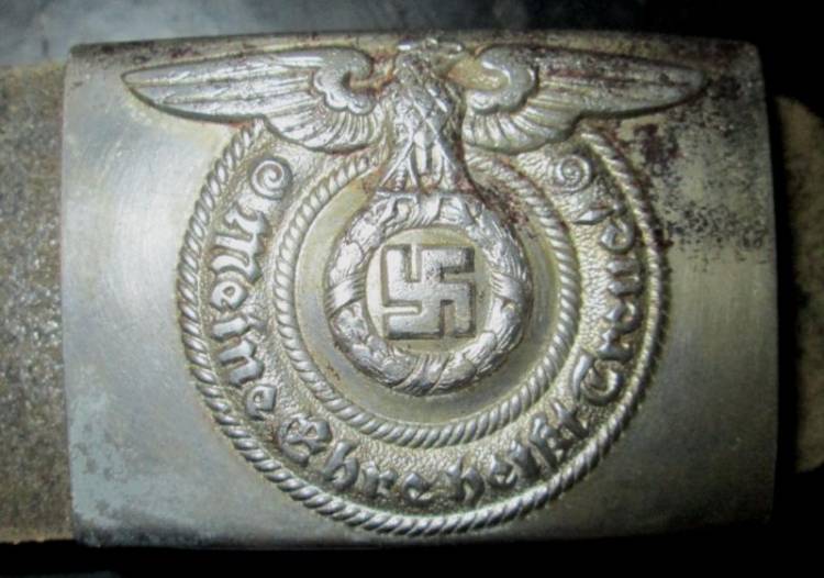 CINTURONE + FIBBIA SS TRUPPA USATA. PEZZI NON ASSENBLATI. CONSERVA TRACCE DI VERNICE ARGENTO.